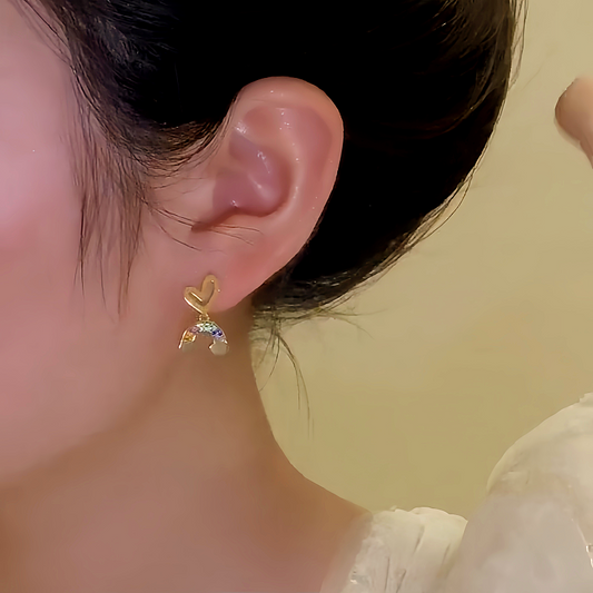 14K Gold-plated Elegant Heart-Design Rainbow Earrings