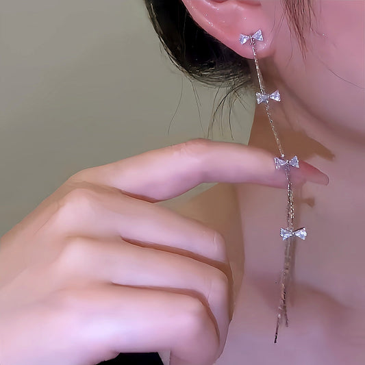 14K Gold-Plated Micro-Diamond Bow Long Tassel Earrings