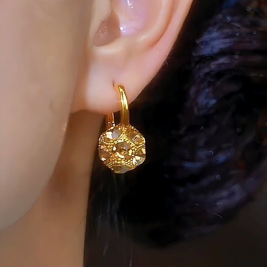 14K Gold-plated Luxury Brown Crystal Ball Earrings