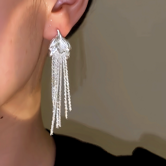 14K Gold-plated Luxury Leaf Tassel Earrings