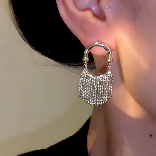 14K Gold-plated Luxury Diamond Tassel Wind Chime Hollow Earrings