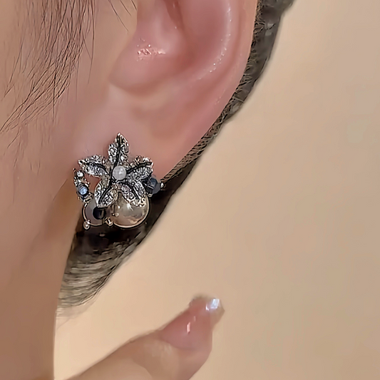 14K Gold-Plated Luxury Zircon Black Diamond Butterfly Pearl Tassel Earrings