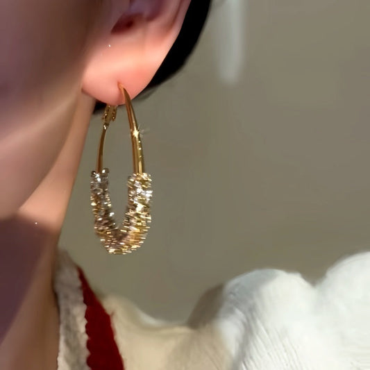 14K Gold-Plated Diamond Oval Hoop Earrings