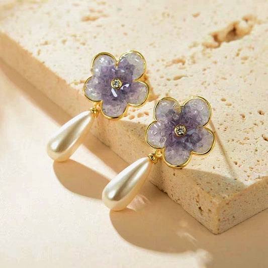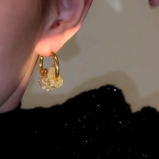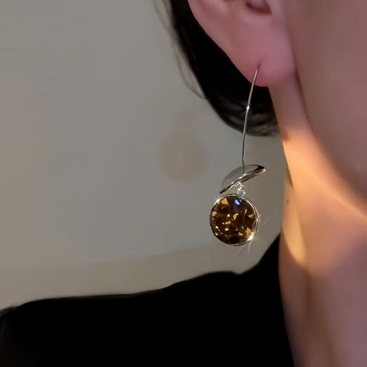 14K Gold-Plated Brown Diamond Cat's Eye Stone Earrings