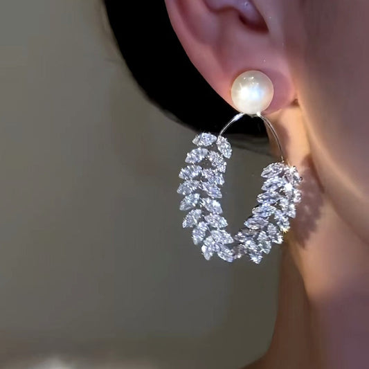 Sterling Silver Zircon Heart-Design Pearl Chain Necklace