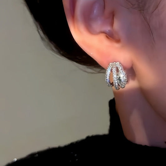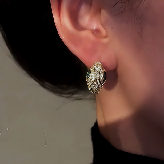 14K Gold-Plated Zircon Green Eye Snake Hoop Earrings