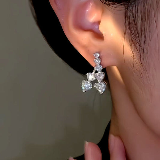 18K Gold-Plated Zircon Heart Tassel Earrings