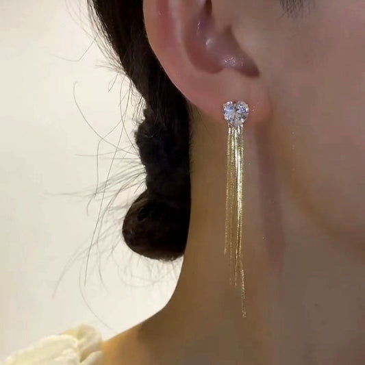 Sterling Silver Elegant Zircon Diamond Tassel Earrings