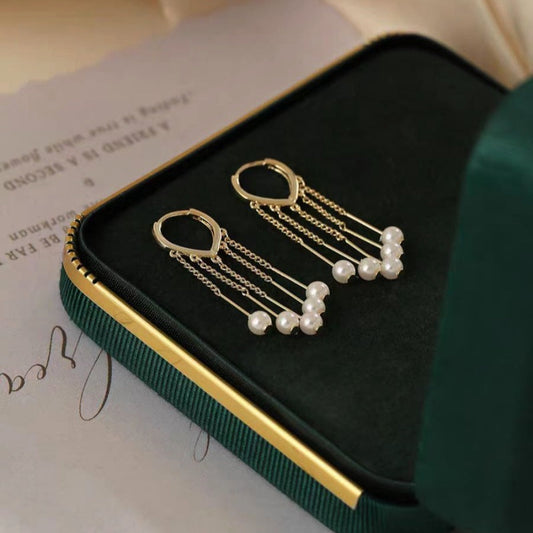 18K Gold-plated Elegant Pearl Tassel Earrings