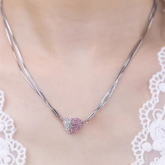 Silver Plated Silver Pink Love Magnetic Necklaces