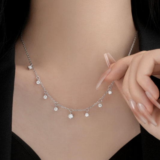 Sterling Silver Sparkling Moissanite Graf 1.1 Carat Clavicle Chain Necklaces
