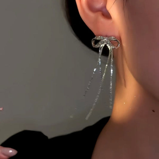 14K Gold-Plated Elegan Zircon Bow Tassel Earrings