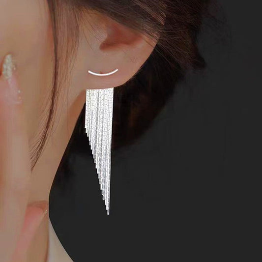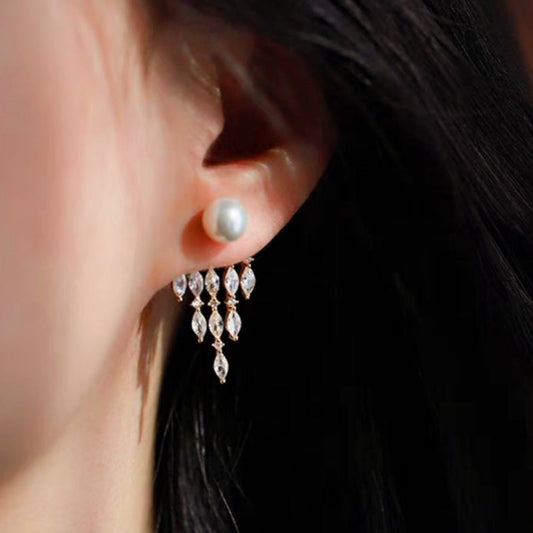 18K Gold-plated Elegant Zircon Long Tassel Pearl Earrings