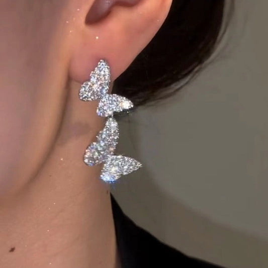 Sterling Silver 2024 Bling Double Butterfly Earrings