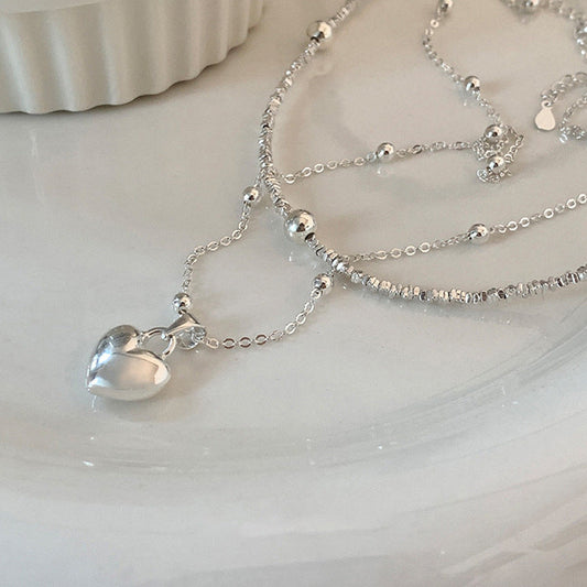 Sterling Silver Heart Stacked Broken Silver Necklaces