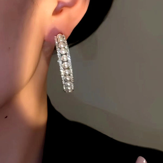 14K Gold-plated Luxury Simple Beads Hoop Earrings