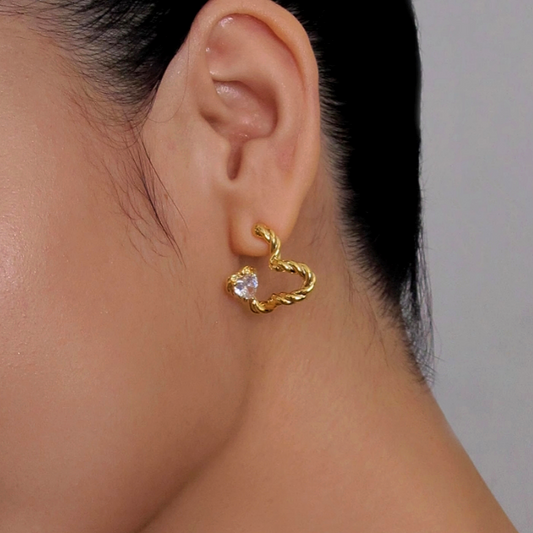 18K Gold-Plated Twisted Zircon Heart Earrings