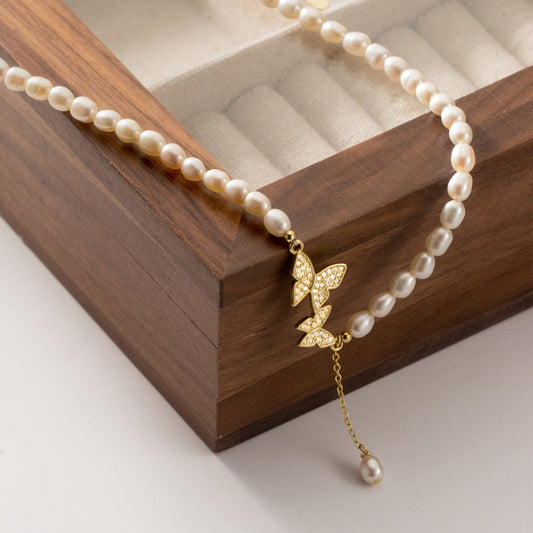 Sterling Silver Luxury Zircon Tassel Butterfly Clavicle Necklace