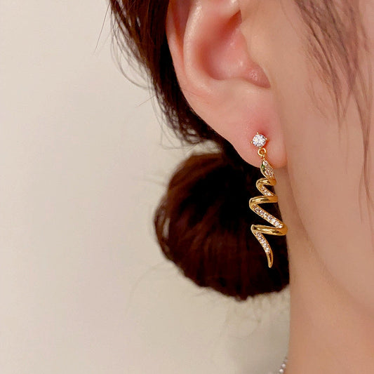 14K Gold-Plated Elegant Zircon Snake-Shaped Spiral Earrings