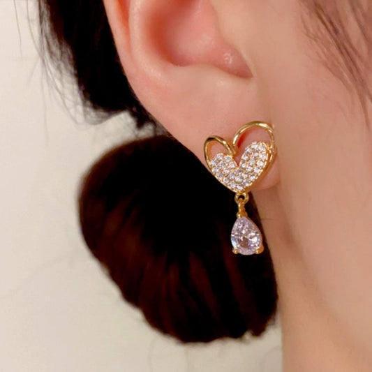 14K Gold-Plated Zircon Heart Tassel Earrings