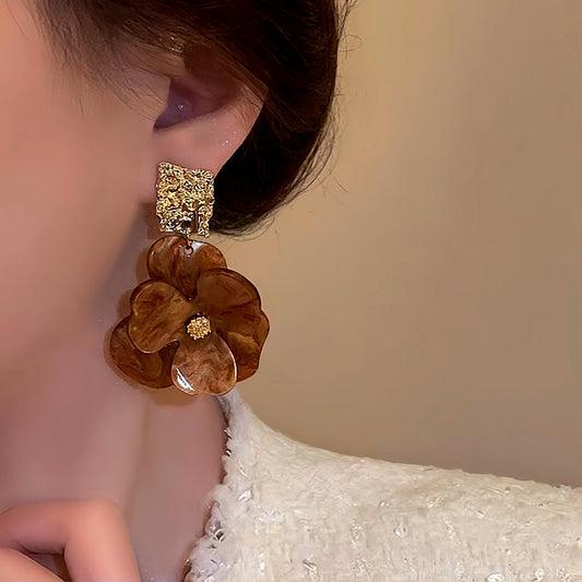 14K Gold-Plated Elegant Irregular Flower Stud Earrings