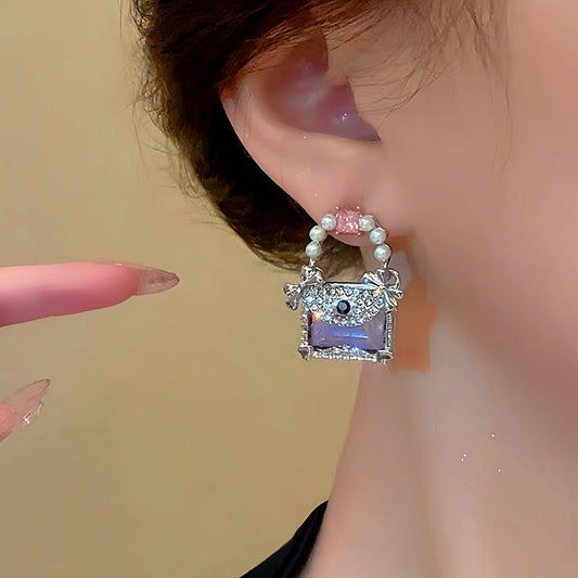 14K Gold-Plated Pearl Crystal Bag Earrings