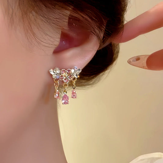 14K Gold-Plated Zircon Butterfly Wing Tassel Earrings