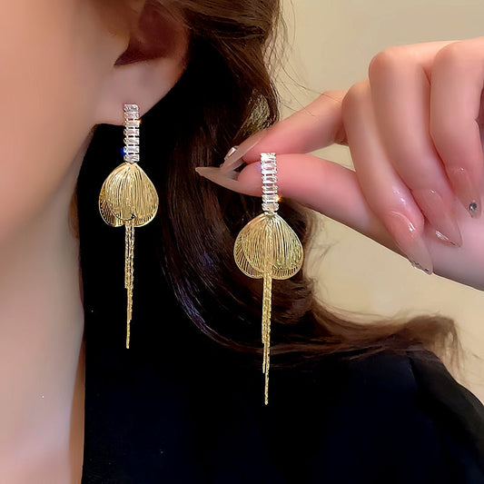 14K Gold-Plated Hollow Crystal Tassel Earrings