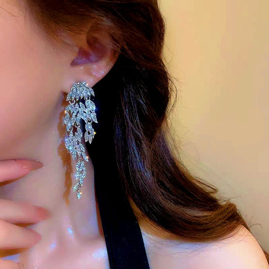 14K Gold-Plated Zircon Leaf Tassel Earrings