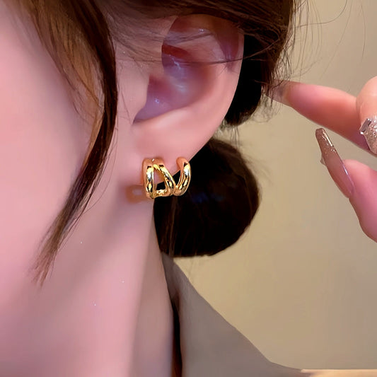 14K Gold-Plated Multi-Layer Stud Earrings