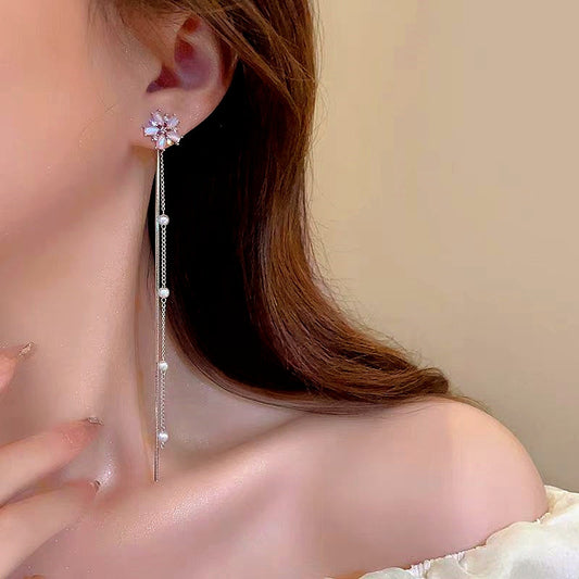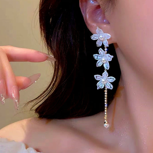 14K Gold-Plated Pearl Flower Tassel Earrings