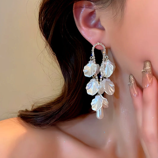 14K Gold-Plated Pearl Petal Tassel Earrings