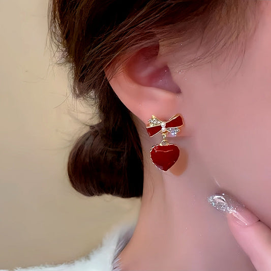 Silver Post Bow Heart Earrings