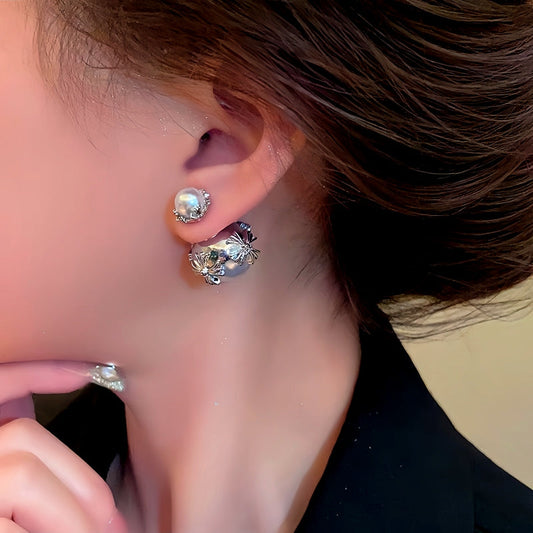 14K Gold-Plated Blue Butterfly Pearl Pendant Ear Hook Earrings