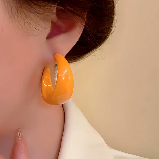 Silver Post Cute Candy Color C-shaped Earrings