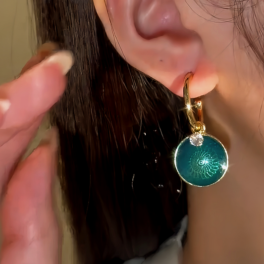14K Gold-Plated Vintage Emerald Diamond Oval Earrings