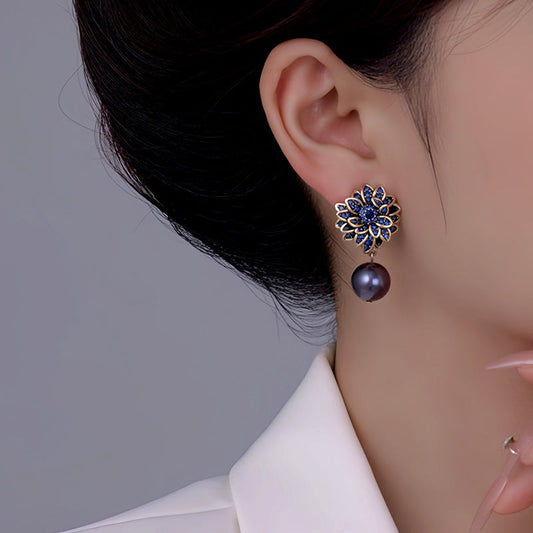 14K Gold Plated Colorful Diamond Flower Earrings