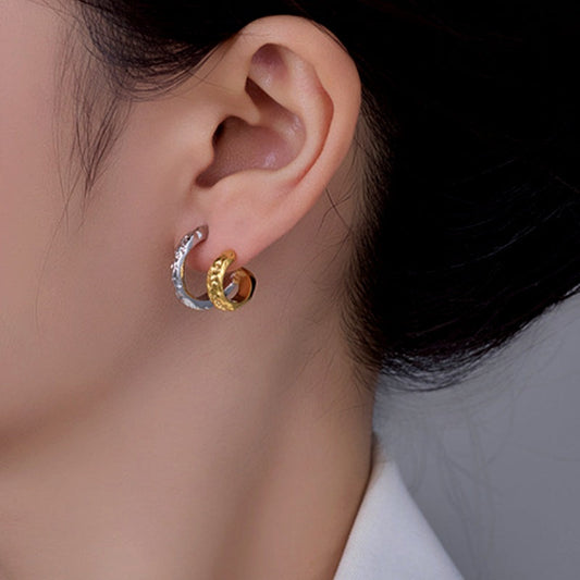 14K Gold-Plated Hollow Double-Layer Stud Earrings