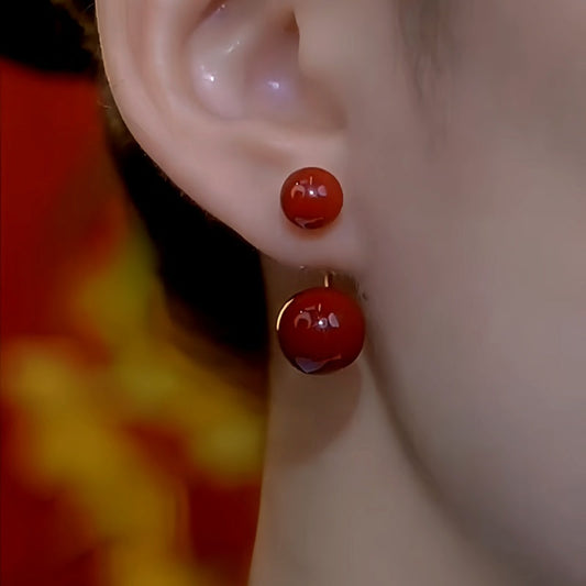 14K Gold-Plated Red Double Bead Earrings