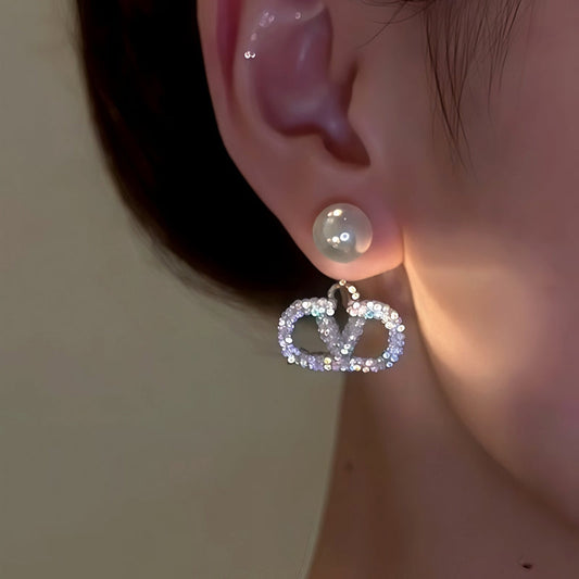 14K Gold-Plated Elegant Diamond V Letter Pearl Earrings