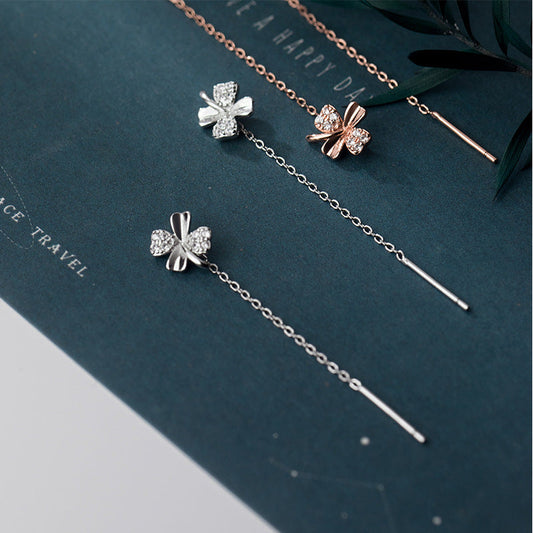 Sterling Silver Diamond Four-Leaf Flower Threader Earrings