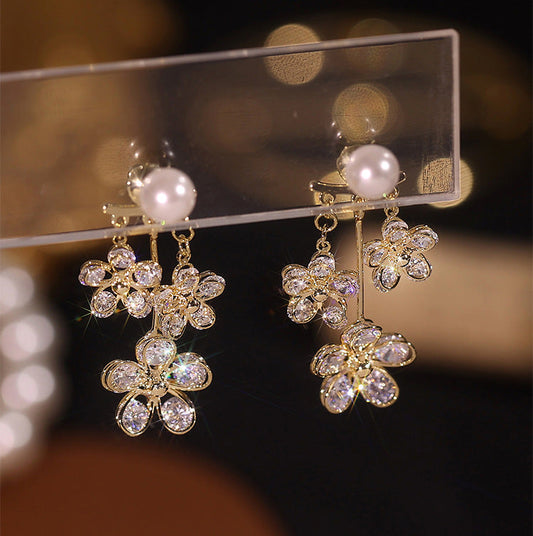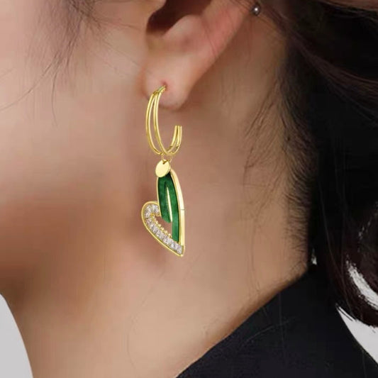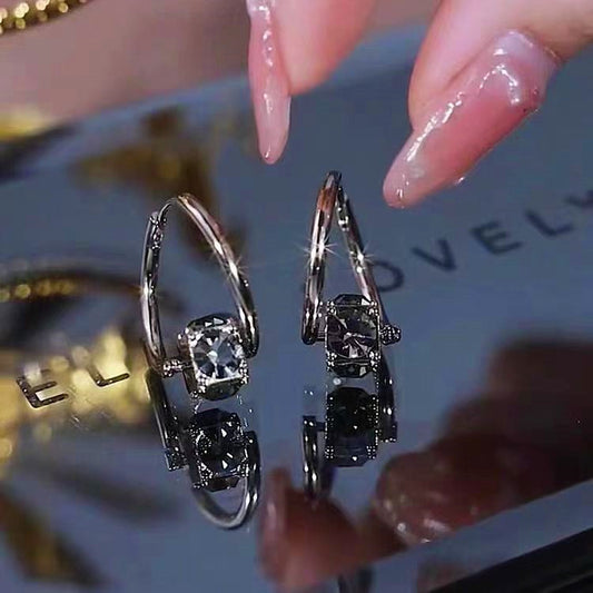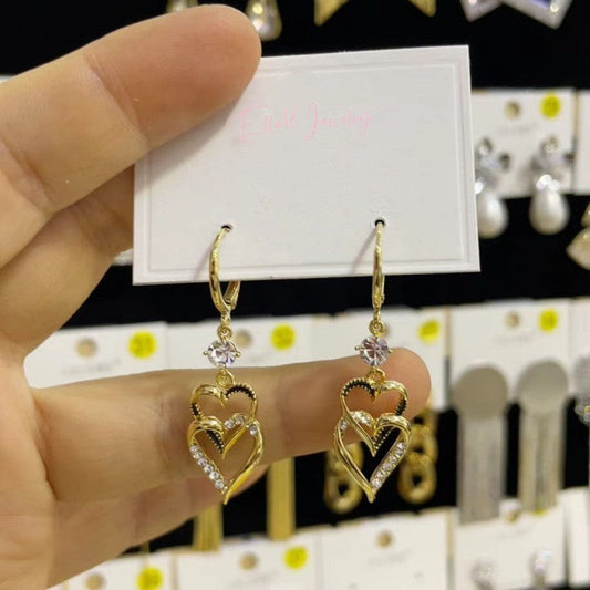 Silver Post Double Layer Full Diamond Love Heart Earrings