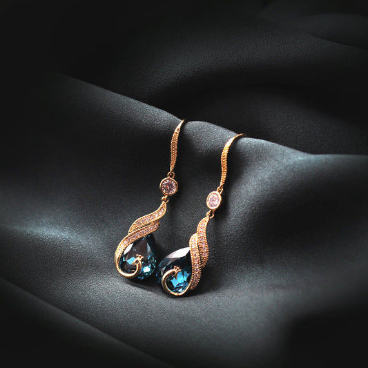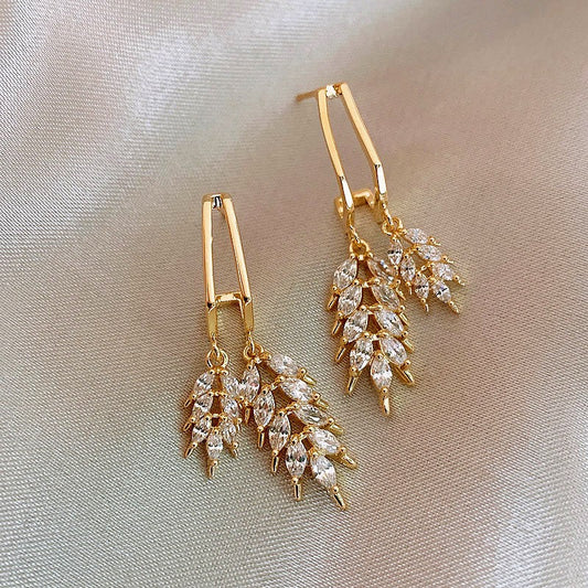 14K Gold-plated Wheat Leaf Cat's Eye Stone Earrings