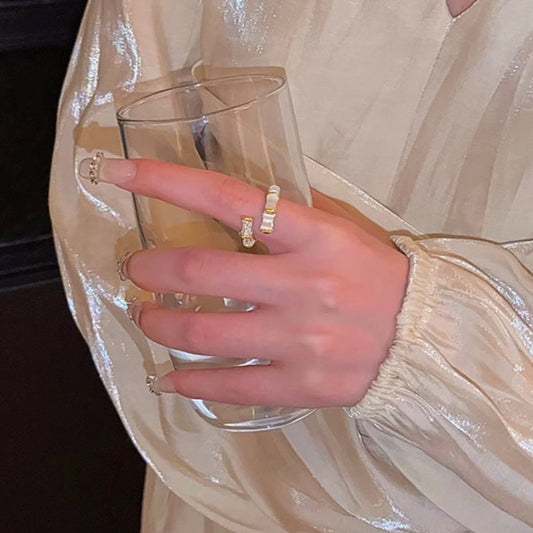 14K Gold-plated Opal Bamboo Rings