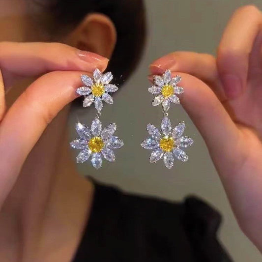 Silver Post Glitter Diamond Flower Earrings
