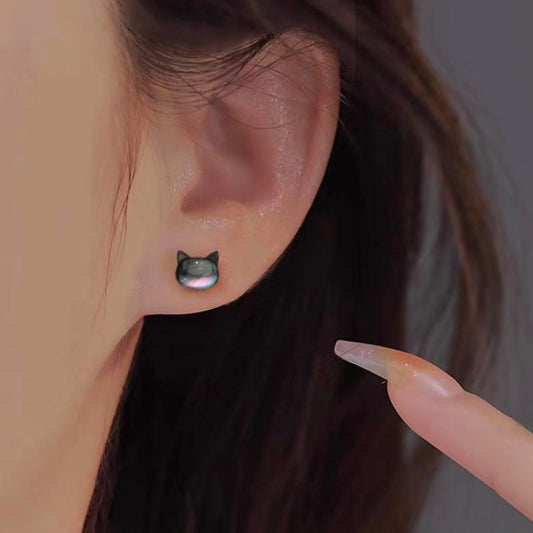 Sterling Silver Black Cat Stud Earrings