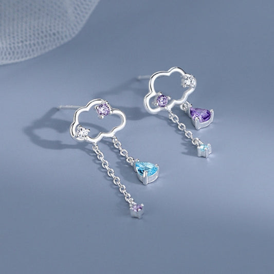 Sterling Silver Cloud and Diamond Water Drop Earrings