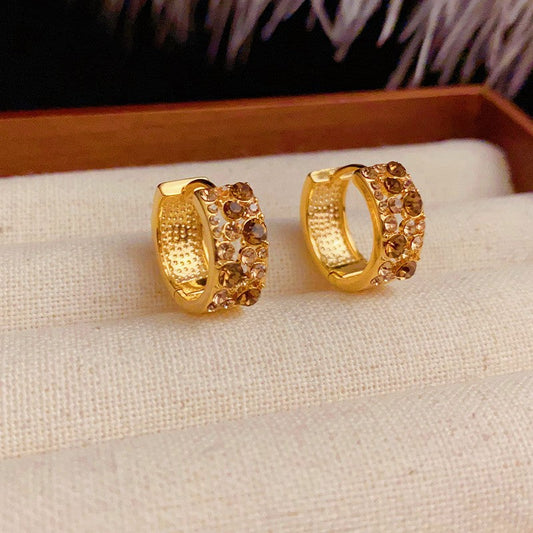 14K Gold-plated Simple And Exquisite Diamond-Encrusted Hoop Earrings