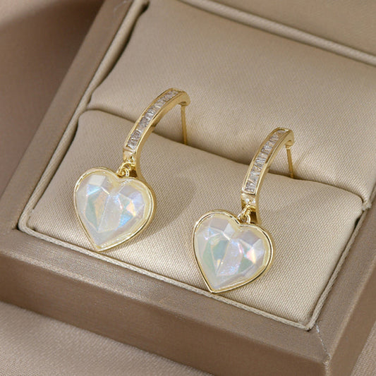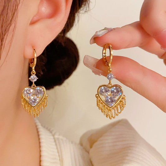 14K Gold-plated Zircon Love Heart Earrings