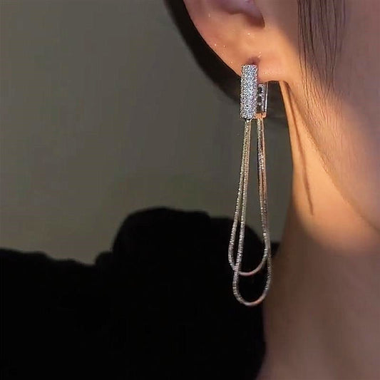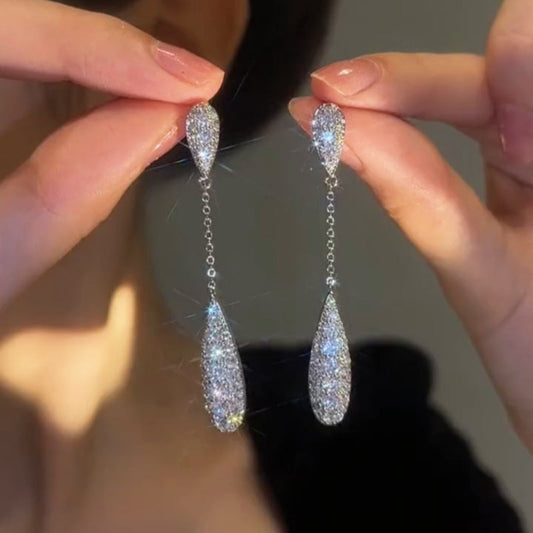 Silver Post Micropaved Silver Chain Earrings